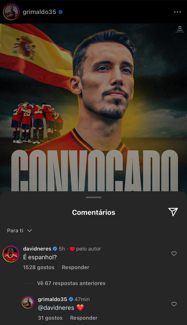 David Neres, jogador do Benfica, reagiu, através do Instagram, à convocação de Alejandro Grimaldo para a seleção espanhola.