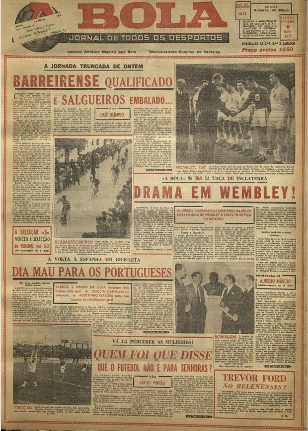 Como mudam os tempos, e como nem os mais progressistas de cada época escapam à inércia do conservadorismo... Ciclismo e Taça de Inglaterra eram os outros temas do dia.