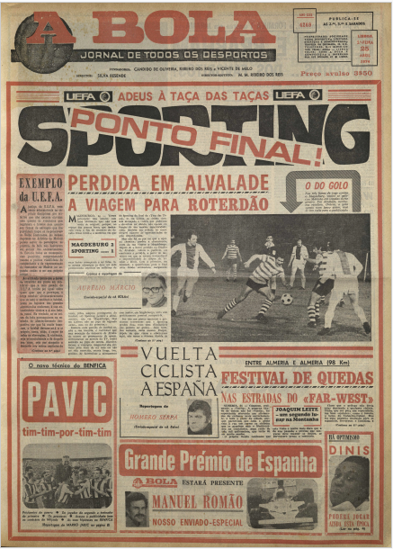 Poucas horas antes de as colunas de Salgueiro Maia deixarem Santarém, ou o pessoal de Artilharia partir de Vendas Novas para ajudar os outros capitães a resgatar a Liberdade, o Sporting perdia a possibilidade de qualificar-se para as meias-finais da Taça das Taças ao perder com o Magdeburgo, na Alemanha, por 1-2. A eliminação ficou a dever-se, escreveu então Aurélio Márcio, aos muitos golos perdidos pelos leões no jogo da primeira mão, em Alvalade.