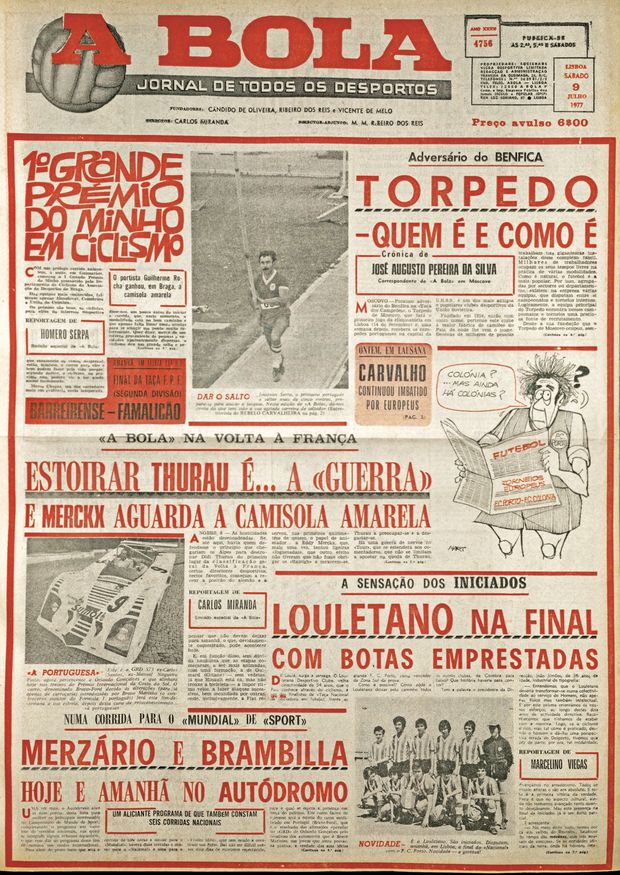 Carlos Miranda, o mais especial dos enviados especiais de A BOLA ao Tour, ocupava naturalmente largo espaço na primeira página. Mas também havia o I Grande Prémio do Minho. E um evento de automóveis no Estoril.