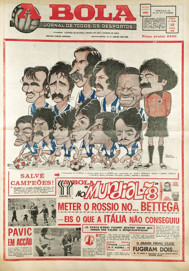 Foi com uma caricatura que a A BOLA homenageou, na primeira página de 15 de junho de 1978, o FC Porto, campeão nacional — curiosamente terminou a prova com os mesmos pontos, 51, do 2.º classificado, o Benfica — após 19 de jejum.