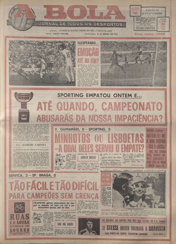 O Benfica venceu (3-0) o SC Braga e a diferença diminuiu para apenas três pontos e A BOLA questionava: «Até quando, Campeonato abusarás da nossa impaciência?»