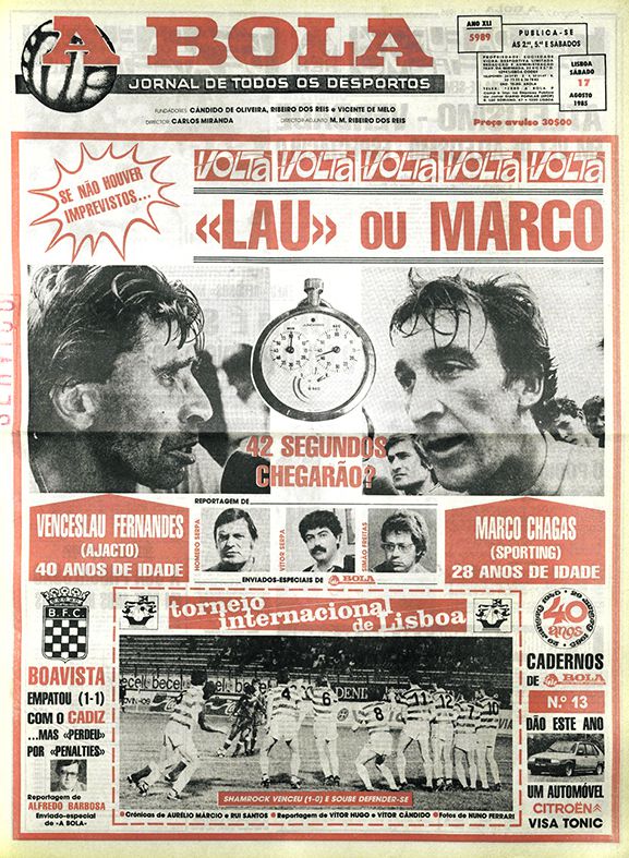 A Volta a Portugal a fazer a manchete de A BOLA há 40 anos, com a decisão adiada para a última etapa, um contrarrelógio de 23 quilómetros. «O sempre jovem Venceslau Fernandes», como escreveu Homero Serpa, defendia a camisola amarela, que tinha conquistado na subida da Serra da Estrela, destronado precisamente Marco Chagas, então segundo classificado.
