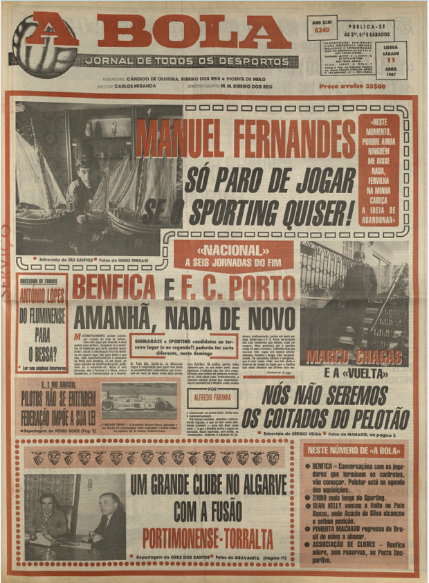Ainda assim, Manuel Fernandes era manchete no jornal, porque numa entrevista a Rui Santos dava conta de que o Sporting nada lhe dizia sobre o futuro e ponderava abandonar a carreira. No final da época deixou Alvalade, sim, mas ainda foi a Setúbal marcar 20 golos em 30 jogos pelo Vitória.