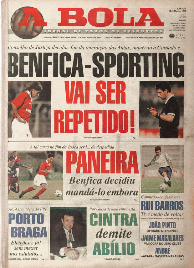 Em vésperas de mais um dérbi, o duelo entre os eternos rivais fez a manchete de A BOLA há 30 anos, com notícia bombástica: Benfica-Sporting vai ser repetido!