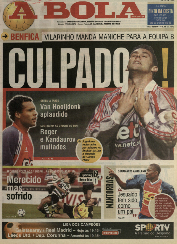 Há 24 anos, A BOLA fazia manchete com a despromoção do futuro campeão da Europa pelo FC Porto