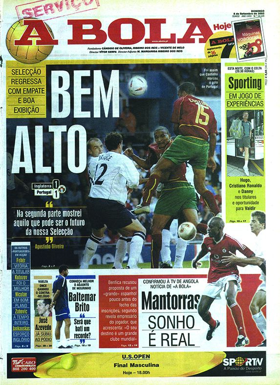 Com as provas domésticas em pausa devido aos compromissos das seleções — Portugal goleou, anteontem, a Arménia, por 5-0, e amanhã joga na Hungria frente ao conjunto magiar, encontro da 2.ª jornada do grupo F da qualificação europeia para o Mundial-2026 —, também em 2002 o campeonato nacional estava de folga e a Seleção Nacional foi, a 7 de setembro, a Birmingham, onde empatou a um golo frente a Inglaterra, particular realizado no Villa Park, a casa do Aston Villa.