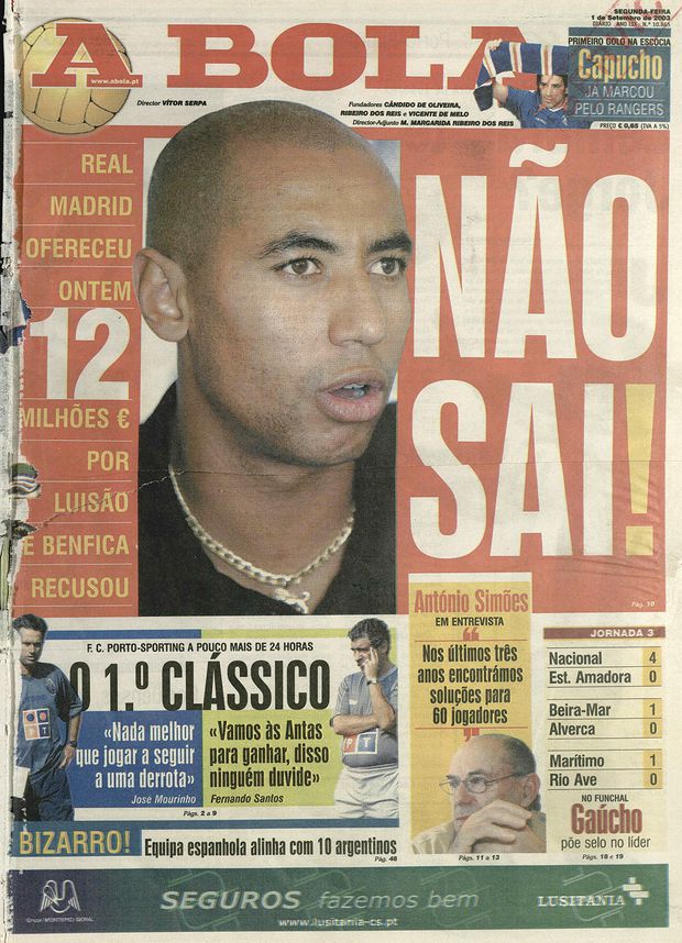 'Luisão não sai´ foi a manchete de a A BOLA de 1 de setembro desse ano. E, com efeito, o centralão não só ficou no Benfica como fez um total de 15 anos de águia ao peito (de 2003 até 2018) coroados com 21 troféus: sete campeonatos nacionais, igual número de Taças da Liga, quatro Supertaças Cândido de Oliveira e três Taças de Portugal.