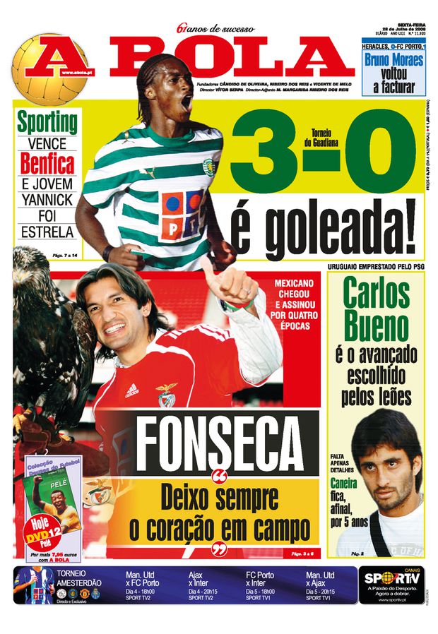 A 28 de julho de 2006, a A BOLA fez manchete com o que apelidou de goleada, 3-0 do Sporting ao Benfica em encontro referente ao Torneio do Guadiana, competição criada em 2001 (e que a partir de 2013 ganhou a designação de Algarve Cup).