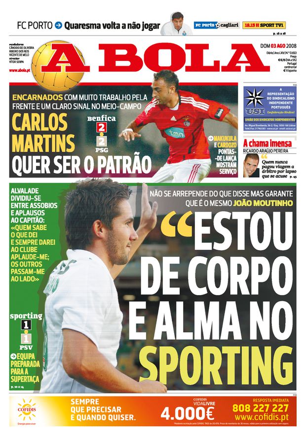 Neste dia em 2008: João Moutinho de «corpo e alma no Sporting»