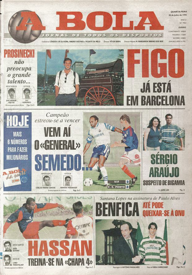 Com formação em dois clubes — Os Pastilhas (1984/1985) e Sporting (1985 a 1989), Luís Figo, atualmente com 52 anos, brilhou nos leões e viveu um verão quente em 1995, há 30 anos, portanto. E aqueceu a partir do momento em que o extremo assinou por... dois clubes italianos, Juventus e Parma, o que lhe valeu dois anos de proibição de rumar a Itália (havia de lá chegar, mas em 2005 e para o Inter).
