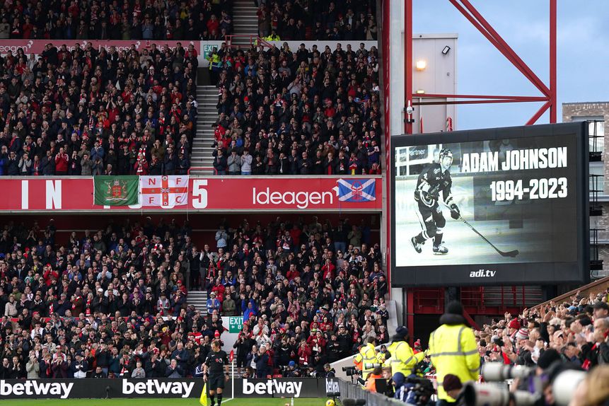 Foi ao minuto 47, o mesmo número que vestia o jogador dos Nottingham Panthers, Adam Johnson, que o estádio do Nottingham Forest prestou uma comovente homenagem ao atleta norte-americano de hóquei no gelo falecido no mês passado.