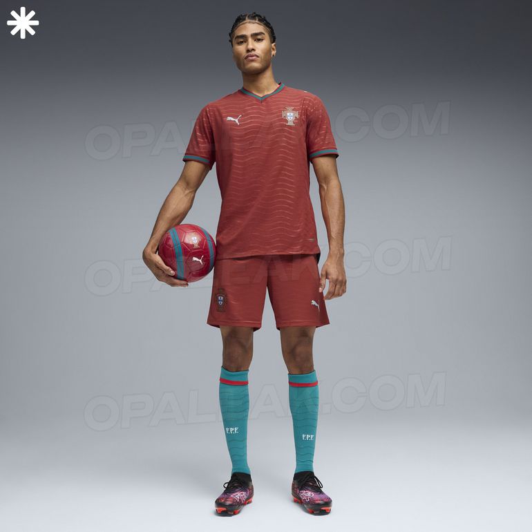 Um post teaser nas redes sociais de Portugal parece confirmar as fugas que saíram há alguns meses, de que o padrão da camisola desenhada pela Puma, principalmente para o Mundial 2026, é inspirado na ligação do país ao mar, contendo um emoji da bandeira de Portugal, ligação e onda.