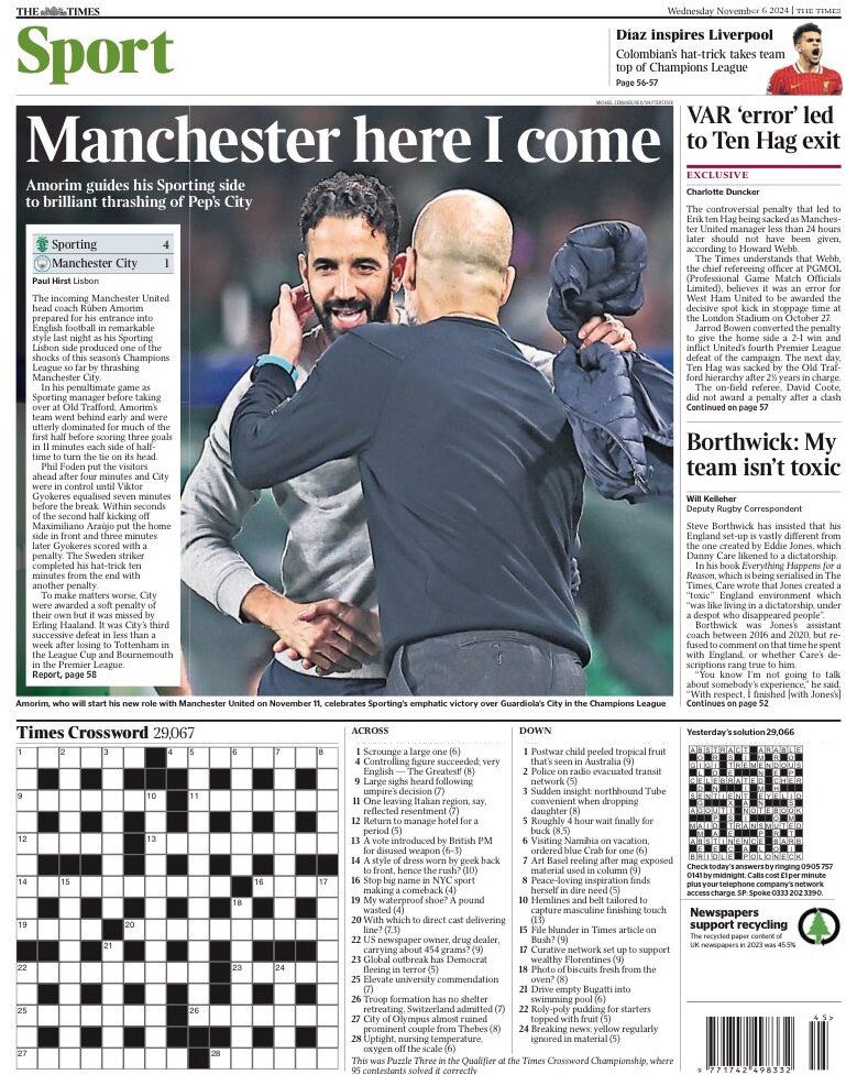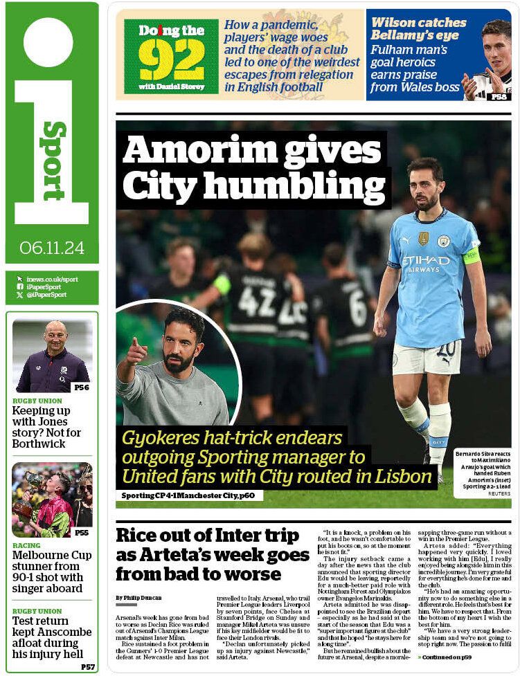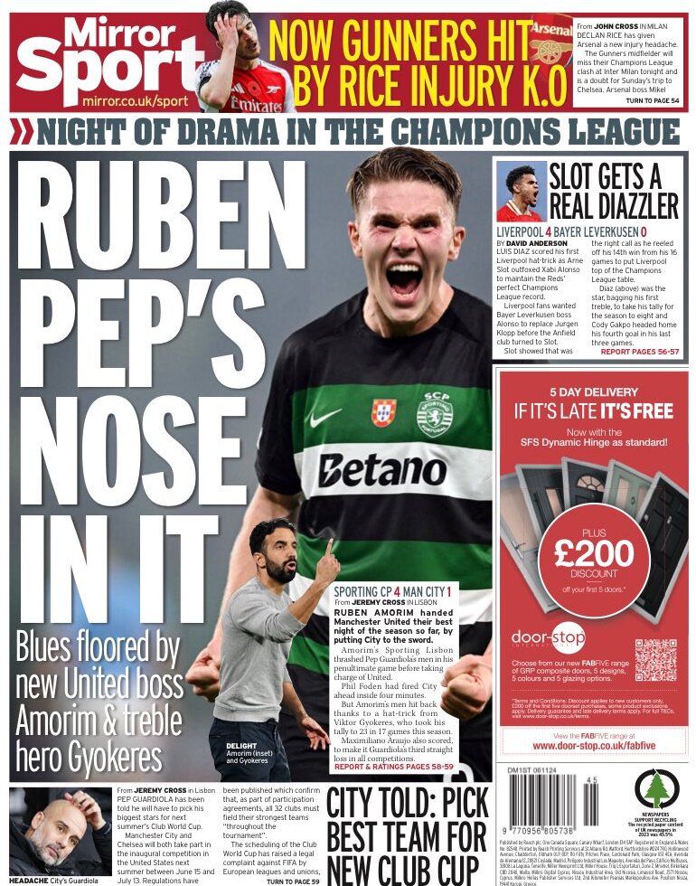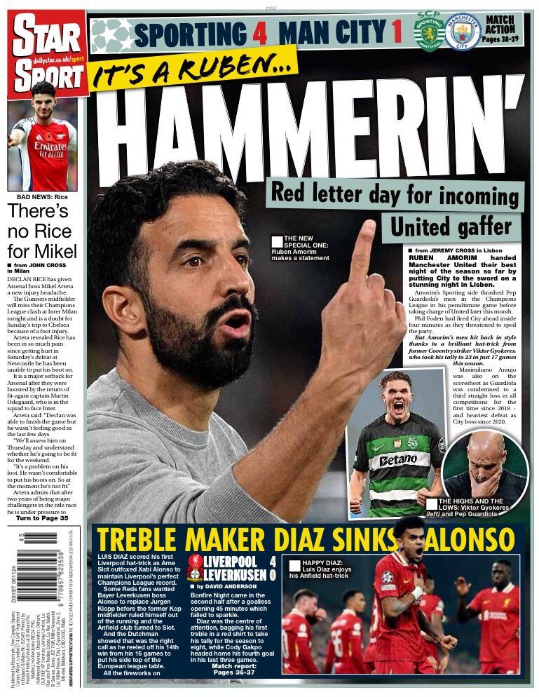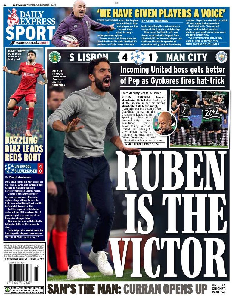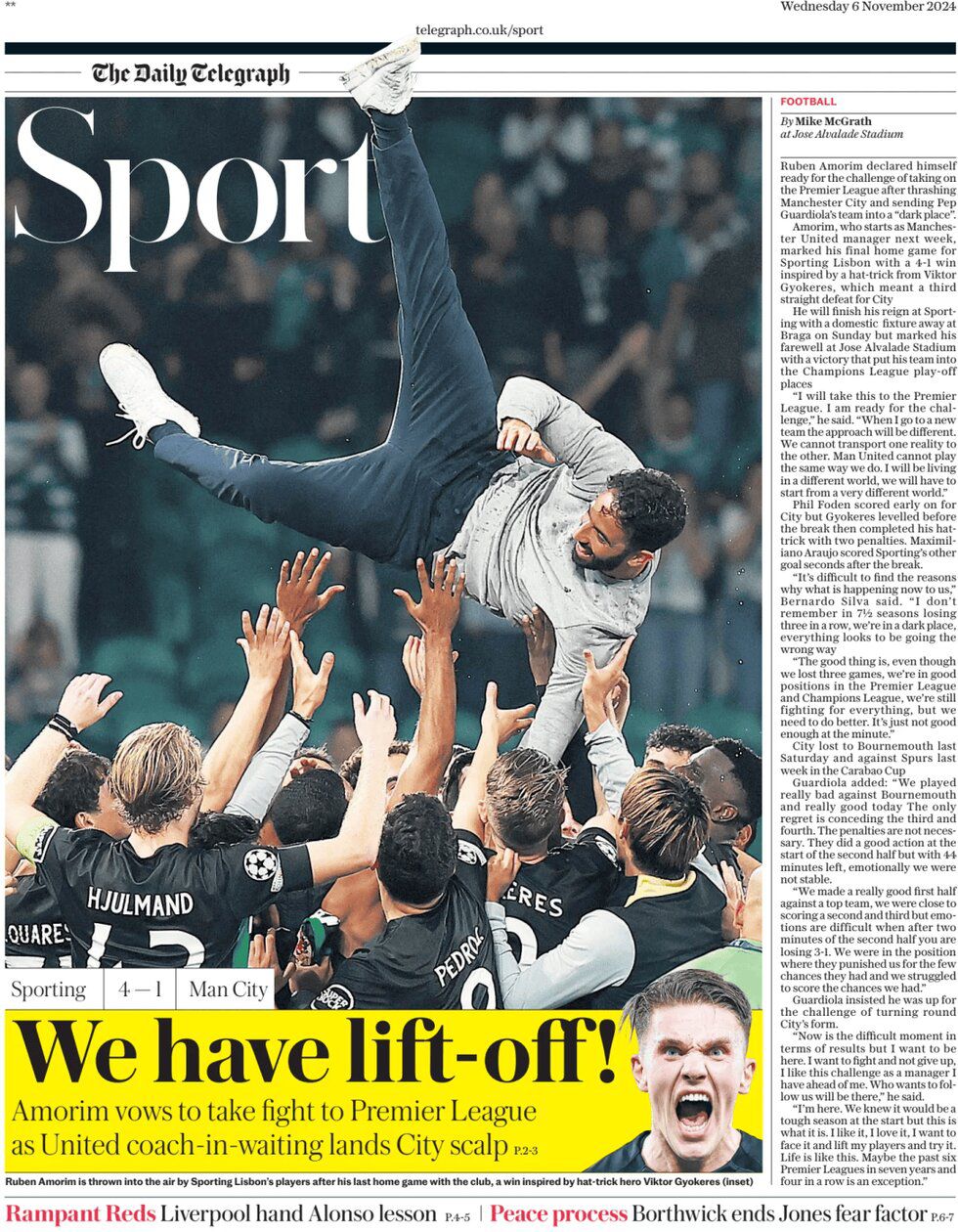 «Manchester, aí vou eu», «próximo treinador do Manchester United reduz City a farrapos», «o novo Special One» e «talvez Rúben seja o novo Sir Alex», são alguns dos títulos, havendo ainda destaque para Gyokeres.
