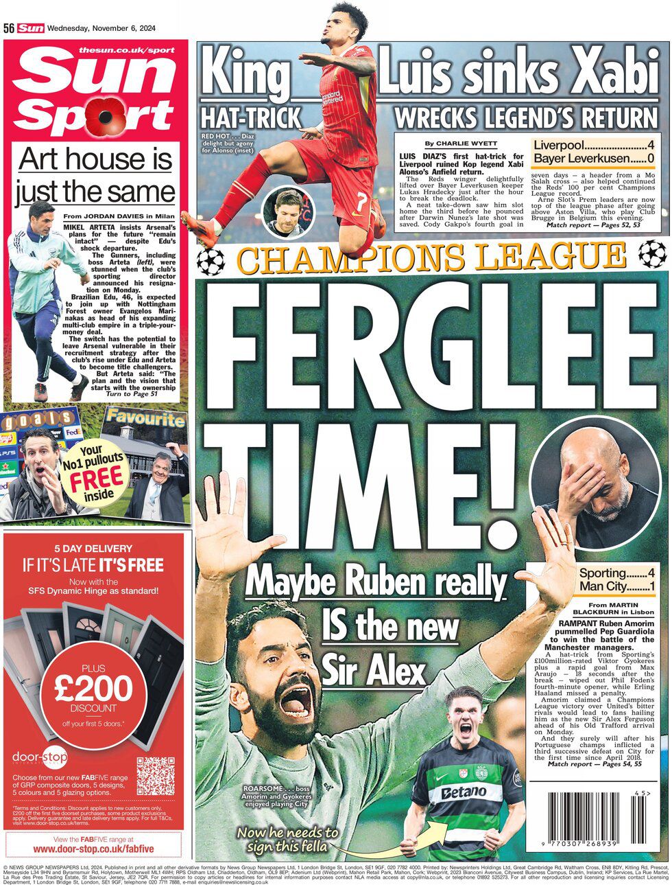 «Novo Ferguson» e «Amorim devora Guardiola»: imprensa inglesa (e não só) reage à goleada do Sporting