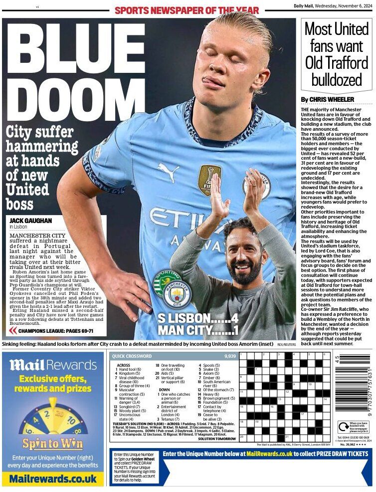 Sob o olhar atento dos ingleses, em especial dos adeptos do Manchester United, o Sporting goleou, depois de ter começado a perder, o Manchester City, por 4-1, na Liga dos Campeões, com hat-trick de Gyokeres. Rúben Amorim, que inicia funções no Manchester United a 11 de novembro, não podia desejar uma melhor despedida de Alvalade.