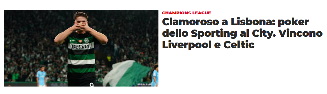 A vitória folgada dos leões diante dos tetracampeões ingleses não passou despercebida em Inglaterra, como seria de esperar, e não só. O Sporting foi destaque um pouco por toda a Europa.