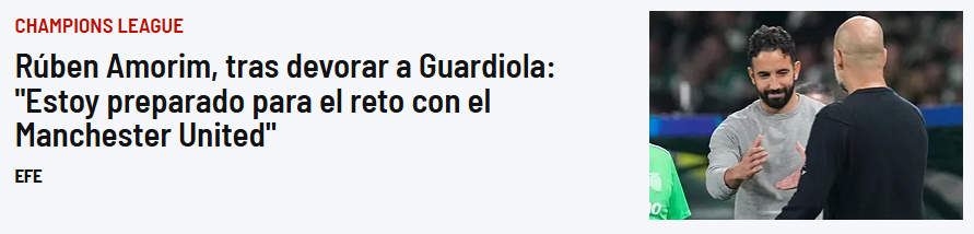Em Espanha, a Marca refere que Rúben Amorim e Gyokeres «devoraram» Guardiola e Haaland, respetivamente.