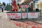 E no dia de ontem, quarta-feira, também a estátua do leão, junto ao Estádio de Alvalade foi alvo de pintura com tinta vermelha.