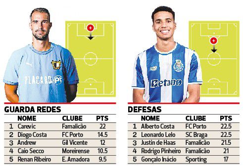Os famalicenses Carevic e Mathias de Amorim — importantes para a única equipa sem golos sofridos na prova — mantêm-se no comando de guarda-redes e médios.