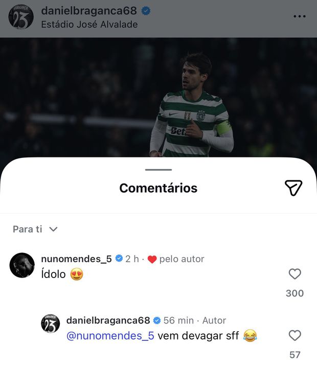 Sobre a Liga e a possibilidade de o Sporting voltar a ser campeão, Nuno Mendes, que acompanha o campeonato nacional com regularidade, mostrou-se confiante: «O Sporting tem boa equipa, espero que consigam dar a volta, estão em segundo lugar, espero que consigam recuperar os pontos em desvantagem, ainda têm de jogar contra o FC Porto. Falo muitas vezes com o Eduardo Quarema, e com outros jogadores. Sobre o jogo não falámos, apenas o Bragança fez um comentário nas redes sociais, espero que esteja bem para amanhã».
