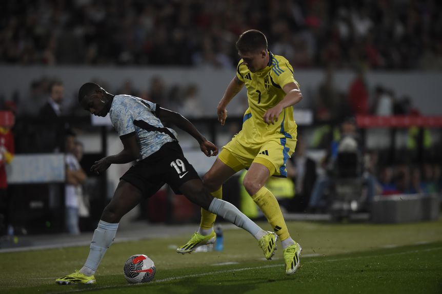 Nuno Mendes, pressionado por Holm, jogou a primeira parte do jogo com a Suécia. Foto: Grafislab