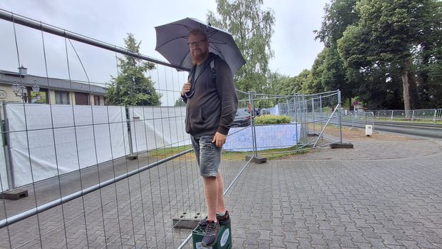 A comitiva portuguesa havia chegado de madrugada, já passavam das cinco da manhã, na viagem Frankfurt-Marienfeld. As horas tardias não moveram curiosos, assim como está manhã, muito chuvosa, gélida, a convidar o sossego de casa. Mas, como em tudo na vida, existem exceções. E essa exceção dá pelo nome de Nico Muller. Um alemão que aproveitou o dia de folga para tentar a sorte junto do portão onde a equipa está instalada em Marienfeld. Sozinho, munido de um banco e um chapéu, imune ao frio e à chuva.