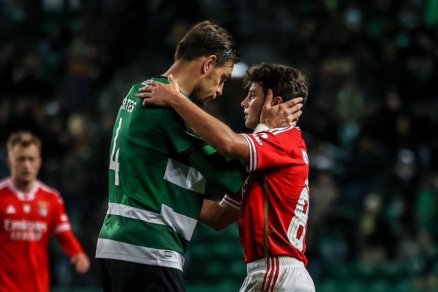 Um dérbi intenso, sempre vivido com a máxima rivalidade, mas apenas um jogo de futebol. No final do Sporting-Benfica, o capitão leonino, Sebastián Coates, e o médio das águias João Neves protagonizaram um bonito momento no relvado de Alvalade.