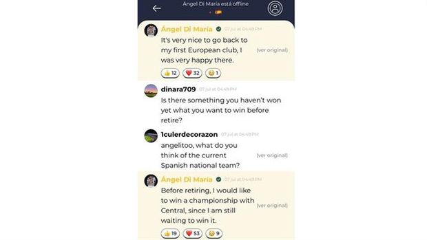 Di María reiterou através da app estar «muito feliz por estar de volta ao Benfica». «É muito bom voltar ao meu primeiro clube na Europa, fui muito feliz aí», justificou.