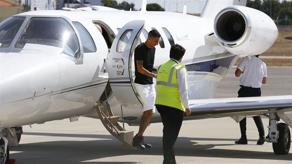 A BOLA TV esteve na chegada de Ángel Di María ao aeródromo de Tires na manhã desta quinta-feira. O campeão do Mundo argentino aterrou pouco antes das 11 horas e chegou ao nosso País acompanhado apenas de um elemento da empresa pela qual é agenciado.