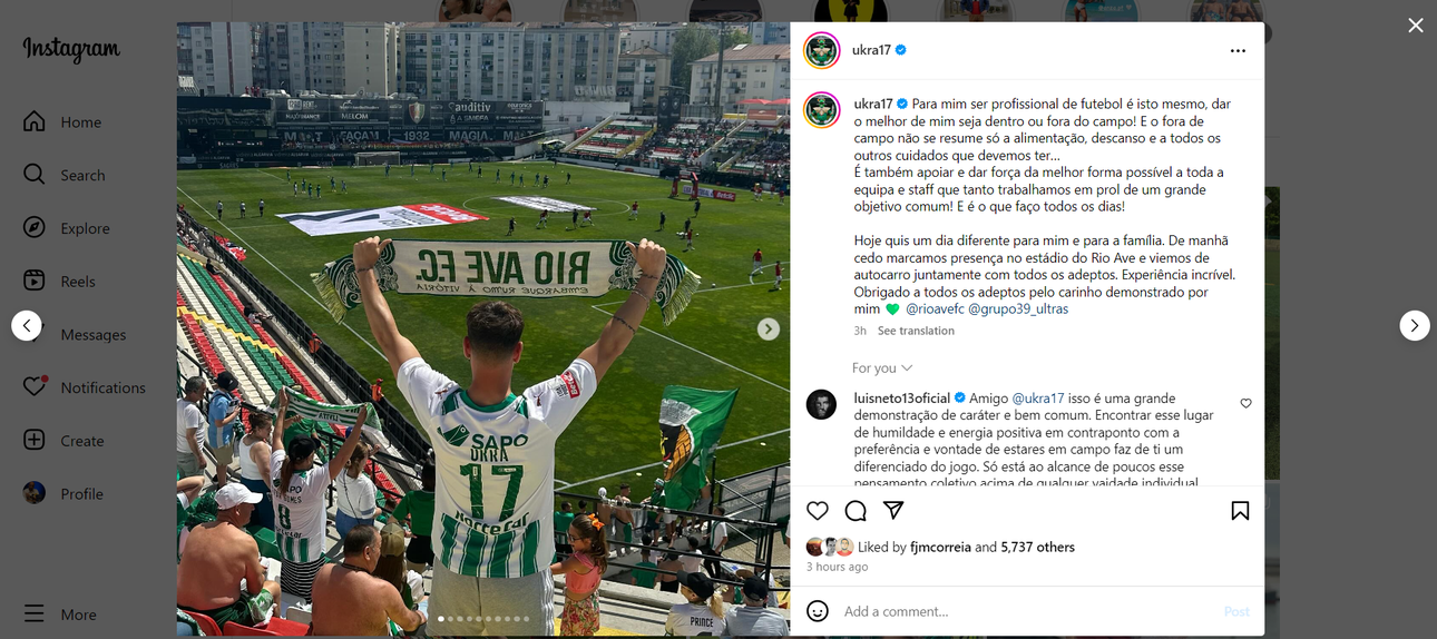 Ukra Monteiro deu um verdadeiro exemplo a todos os profissionais de futebol. O avançado de 36 anos do Rio Ave não foi convocado por Luís Freire para o jogo com o Estrela da Amadora, mas deslocou-se até ao Estádio José Gomes para apoiar os companheiros de equipa. A publicação nas redes sociais já motivou elogios por parte de vários companheiros de profissão.