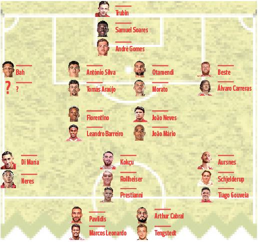 Há ainda dúvidas em relação ao futuro de António Silva e João Neves — até que ponto se confirmam os ataques milionários —, sabendo-se que a eventual saída do médio para o PSG poderá estar diretamente ligada ao regresso de Renato Sanches à Luz.