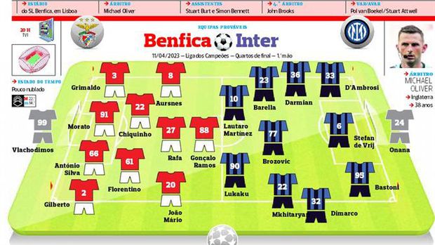Mas deverá ser o primeiro, por ser canhoto, ao contrário de Lucas Veríssimo, mais talhado para jogar à direita, o que obrigaria António Silva a ir para a esquerda. O que torna esse cenário muito improvável. No resto, devem avançar os titulares do clássico de sexta-feira, com Fredrik Aursnes à esquerda e o brasileiro David Neres a começar no banco.
