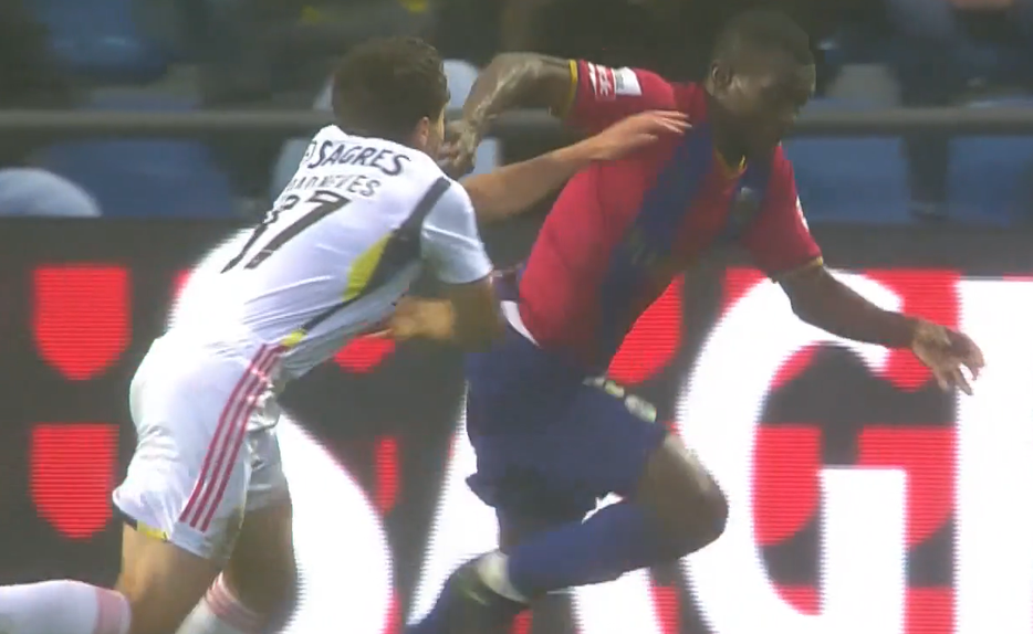 Bruno Langa toca com a mão na cara de João Neves e é assinalado penálti