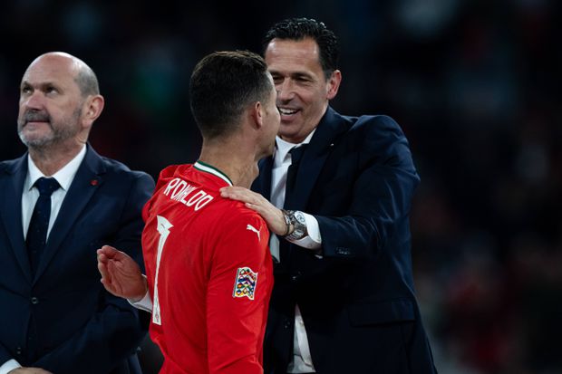 Pedro Proença cumprimenta Ronaldo após a final da Liga das Nações (IMAGO)