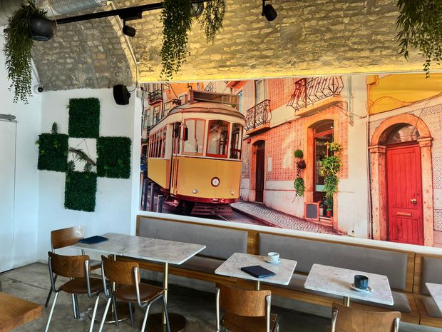 À entrada do espaço há um elemento de decoração que salta à vista: na parede à direita está uma enorme imagem de um elétrico, típico de Lisboa. Produtos portugueses, decoração portuguesa, nome português. Tudo isto numa pastelaria onde ninguém é de origem lusa. Mas então de onde surge esta vontade de alguém em distribuir produtos do nosso país?