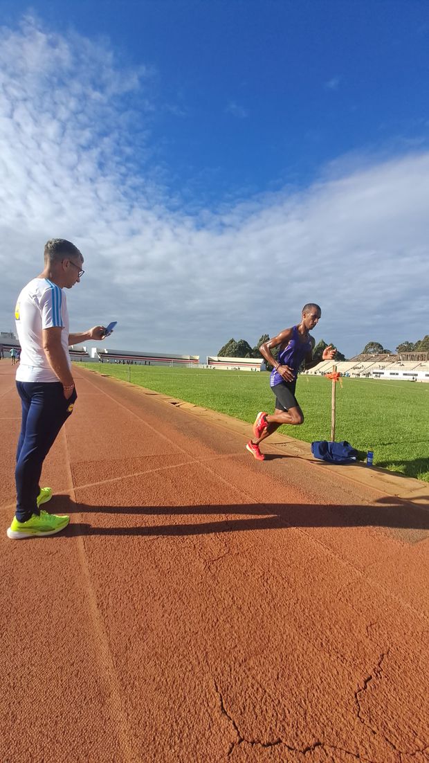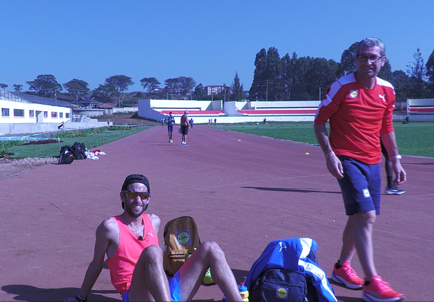 Ouvem-se gritos em todas as zonas da pista de tartan de Eldoret. Os atletas vão passando pela zona da meta e, à medida que passam, os treinadores dão-lhes indicações sobre o ritmo a que estão a correr. Escutam-se as mais diversas línguas, mas, sobretudo, inglês. Até que, quando Samuel Barata cruza a linha de meta, se escuta uma voz bem portuguesa: «Setenta e dois! Está rápido! Abranda um pouco, Samuel…»