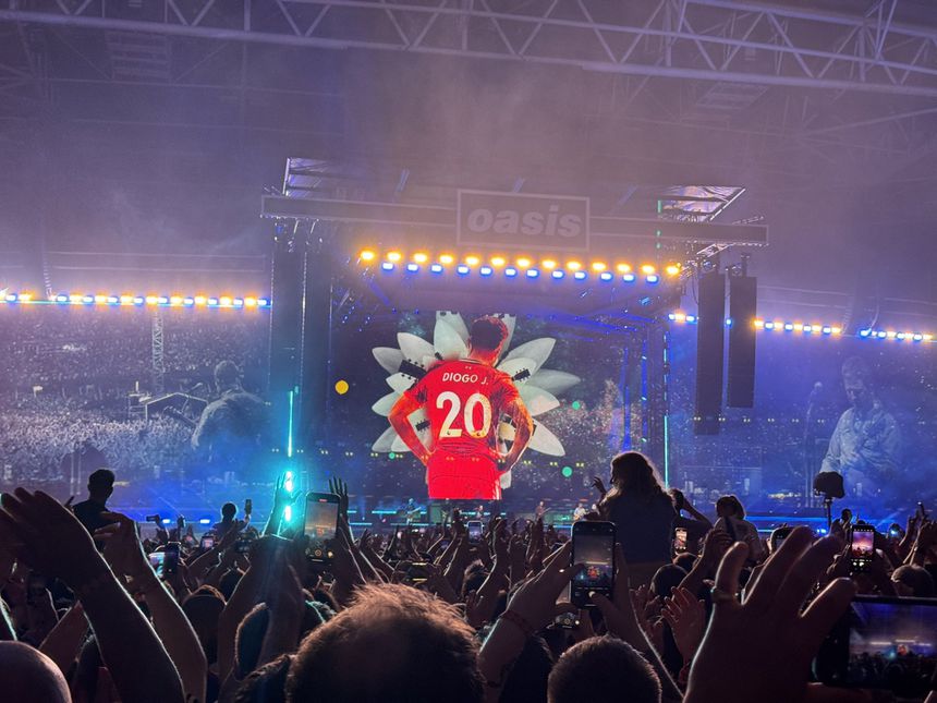 Oasis dedicam 'Live forever' e projetam imagem de Diogo Jota (vídeo)