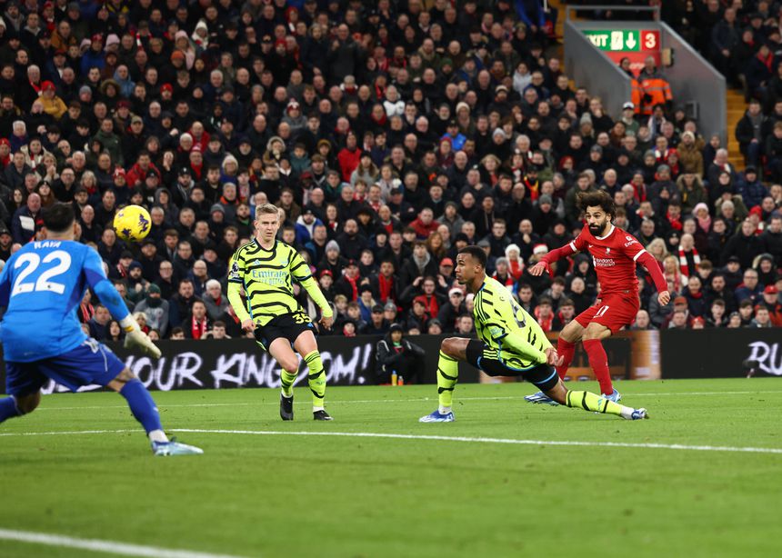 O passe de Alexander-Arnold é fabuloso mas melhor só mesmo a jogada e finalização de Mohamed Salah, com o egípcio a disparar uma ‘bomba’ para o fundo das redes de David Raya depois de deixar Zinchenko para trás. Que momento para o 1-1 em Anfield!