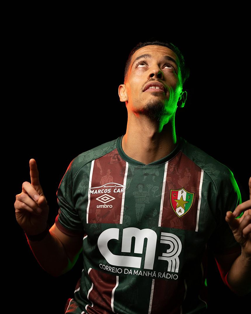 Amine Oudrhiri posa para a fotografia nos primeiros instantes como jogador do Estrela da Amadora. Foto: Roberto Correia/Estrela da Amadora SAD