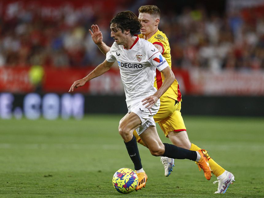 Bryan Gil a defrontar o Girona ao serviço do Sevilha e emprestado pelo Tottenham