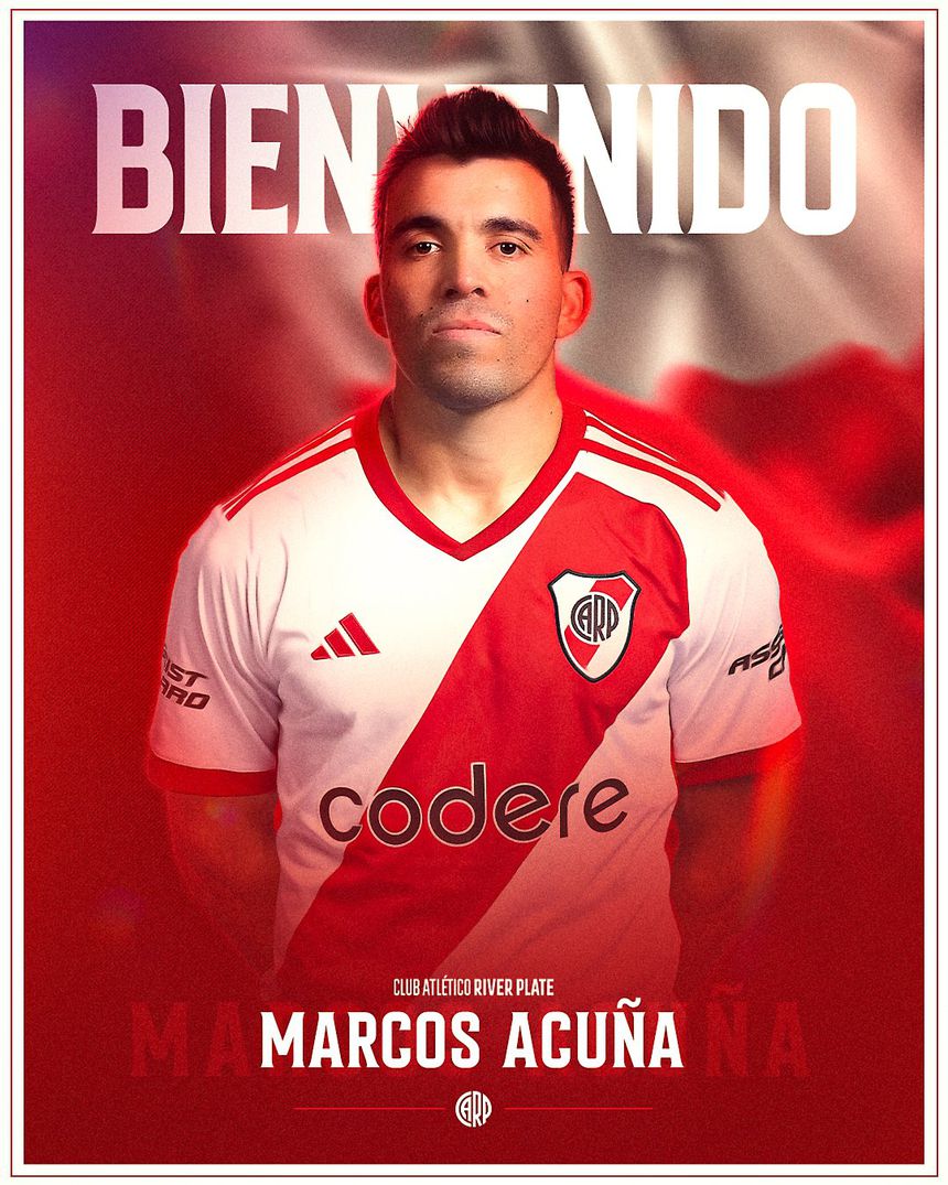 O ex-Sporting foi oficializado pelo River Plate que, algumas horas antes do anúncio, já tinha dado algumas pistas sobre esta contratação. O clube argentino mudou a fotografia das redes sociais para um ovo, ou huevo (em espanhol), a alcunha pela qual Acuña é conhecido.