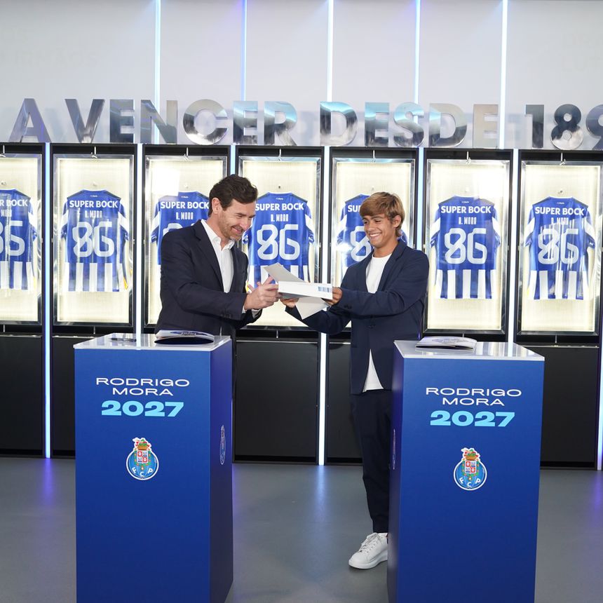 Aos 17 anos, dois meses e quatro dias, o talento de Rodrigo Mora, que brilhou por Portugal no último Campeonato Europeu de sub-17, levou a estrutura dos azuis e brancos a segurar o jovem jogador com um novo contrato, agora válido até 2027.