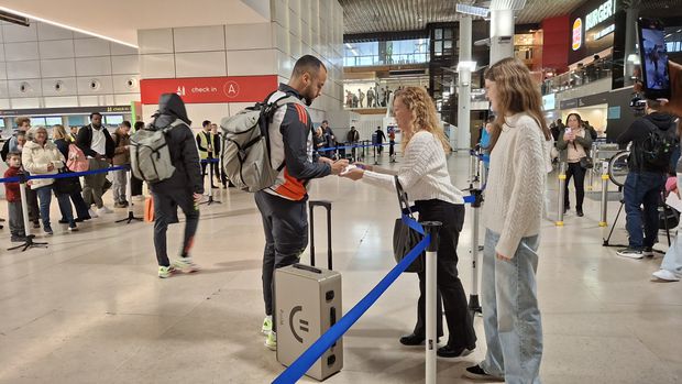 Na zona de partidas do aeroporto, Arthur Cabral foi o mais solicitado, deu autógrafos e posou para fotografias com admiradores. E o avançado italiano Andrea Belotti foi identificado por compatriotas, que o chamaram também para uma fotografia.