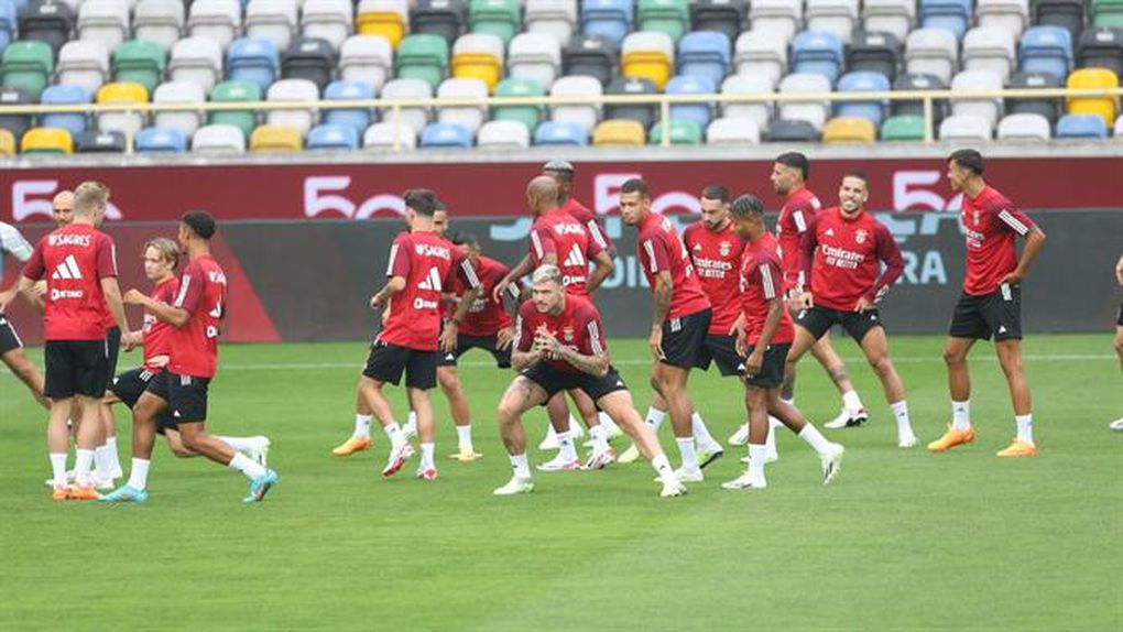 Num relvado aparentemente em boas condições, o grupo fez alongamentos e exercícios de aquecimento, com os guarda-redes a desenvolverem trabalho específico de baliza. A porta a eventuais revelações quanto à composição do onze dos encarnados na final da Supertaça frente ao FC Porto fechou-se ao cabo de um quarto de hora de recolha de imagens, dando para perceber que reina uma atmosfera de serenidade na equipa de Roger Schmidt