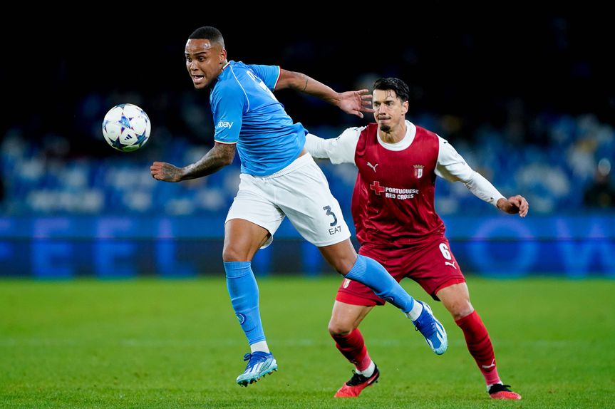 Foi Politano quem, bem cedo, iniciou a derrocada da estratégia do SC Braga. Di Lorenzo fez rapidamente o lançamento de linha lateral para o internacional italiano, que correu mais do que Borja e ao cruzar teve a felicidade de ver Serdar, na passada, a introduzir a bola na própria baliza. Um lance esquisito que deu algum conforto aos azzurri, apesar da boa réplica dos arsenalistas. Numa dessas iniciativas dos minhotos, Ricardo Horta disparou forte em zona central, com Meret, muito bem, a evitar o golo do empate ao defender com estilo e segurança, cedendo canto. Para não sair da matriz, outro lateral, desta vez o esquerdo, tabelou bem com Kvaratskhelia e surpreendido com a velocidade de Natan José Fonte viu-se ultrapassado, com a bola a acabar nos dois pés (primeiro o esquerdo e depois do direito) do melhor jogador africano do ano, Osimhen – sétimo golo da temporada, o primeiro nesta edição da Champions. Motor da equipa, Zielinski deu cabo dos nervos a João Moutinho e, quando fugia para a ala, a Victor Gomez, que teve dificuldades em travá-lo.