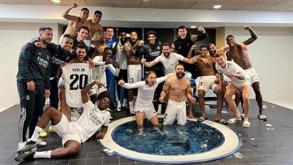 Após a goleada aplicada ao Barcelona (4-0), em Camp Nou, que valeu a passagem à final da Taça do Rei, os jogadores do Real Madrid festejaram intensamente no balneário de Camp Nou.