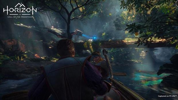 Horizon Call of the Mountain é possivelmente uma escolha perfeita para experimentar o PSVR. Estar no mundo pós-apocalíptico e rodeado por dinossauros gigantes robóticos é absolutamente espectacular. Ver um dinossauro pescoço alto passar por cima de ti é difícil de descrever a sensação ou ver uma espécie de crocodilo vir na tua direção! Escalar montanhas, interagir com os cenários, disparar flechas. Estamos realmente na selva.
