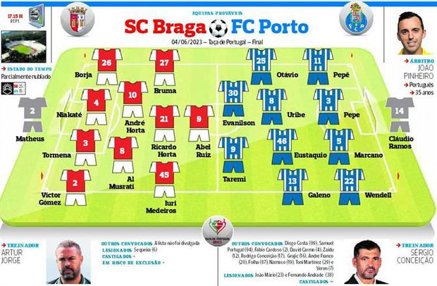 Os onzes prováveis de FC Porto e SC Braga para a final