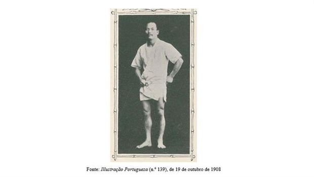 Em artigo recente, demos conta das primeiras imagens sobre as artes marciais orientais (jujutsu e kendo) em Portugal, que foram reveladas pela revista Illustração Portugueza (n.º 79), de 26 de agosto de 1907, quando da passagem de um navio por Lisboa, e da presença de Sada Raku Uyenishi, de 27 anos, mestre japonês, que esteve em atuação no Coliseu. A sua figura magra (59 kg) desiludiu os espetadores presentes, dado que se aguardava uma figura forte e musculada. Mas com as suas demonstrações, os risos foram-se desvanecendo e os olhos passaram a dar uma outra atenção ao nipónico. Houve até quem o quisesse desafiar, mas as forças e as técnicas de Raku foram invencíveis. Raku afirmaria que quando chegou ao Reino Unido venceu “o campeão dos médios e dos pesados da Inglaterra – Gruhn, e desde então todos os campeões de lucta que comigo se têm encontrado têm sido derrotados por mim” (Tiro e Sport, n.º 370, 1908, p. 9).